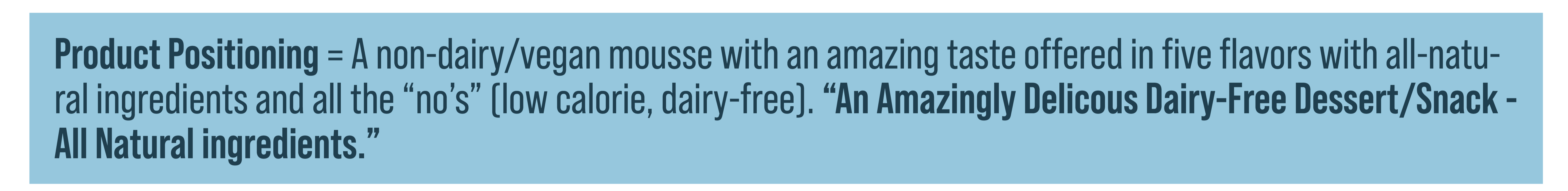 STEP 3 – Product Positioning and Brand Strategy. To clearly communicate important benefits to target customers, employees, and other stakeholders in a coherent, simple, and easy-to-understand manner, Almetta’s executives developed the positioning statement shown in Figure 3. It was complemented by the tagline, “An Amazingly Delicious Dessert or Snack.”