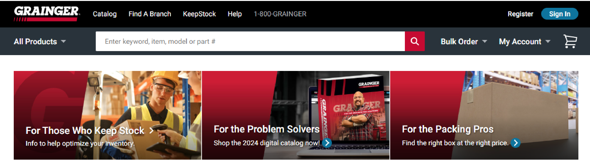 Yet, distributors like Grainger are thriving today. Grainger’s website, shown in Figure 1 clearly articulates the value it offers as a distributor: “The One Item You Need + 1.5 Million More.”