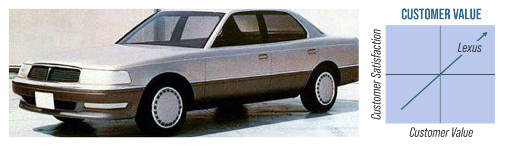 The Lexus F1 Project developed the first Lexus in 1990. A team of Toyota engineers and marketing professionals wanted to understand the desired customer experience for luxury car owners. They wanted to create a high-quality car with a price that created an attractive value based on Lexus’s overall performance, as depicted in Figure 3.1.