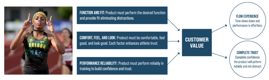 into three categories: (1) function and fit; (2) comfort, feel, and look; and (3) performance reliability. Only when all three needs were met could customer value be created and the professional athlete gets into “the flow”, where performance becomes effortless (Figure 2.1). It is then that professional athletes like Rogers can trust their products will perform reliably and enhance their performance.